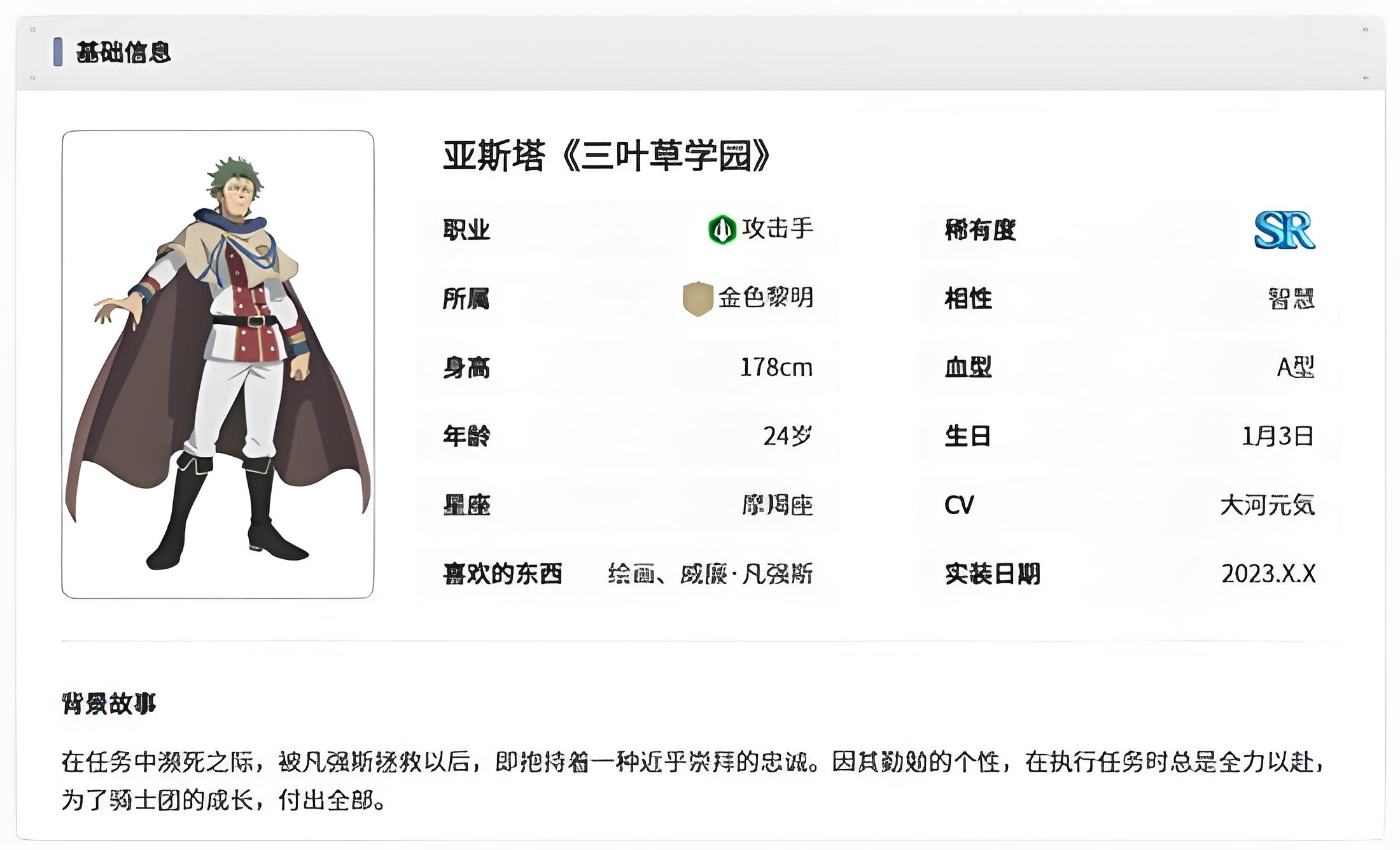 黑色四叶草魔法帝之道亚雷克德拉是金色黎明阵营的SR级攻击手,不少玩家初期组建队伍时都会遇到他,想了解他的实际表现。他定位清晰技能机制兼具输出与控制,适合新手阶段使用,能在过渡期发挥稳定作用,本文整理他的核心技能效果实战优势和适用场景,帮助大家深入了解这位角色的具体强度,为初期队伍组建提供实用参考。