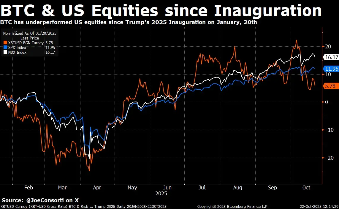 要点在于:当前并非崩盘,而是一次重新校準。比特币今年表现不佳并非源于基本面,而是受资金轮动以及成熟资产类别自然波动所致。