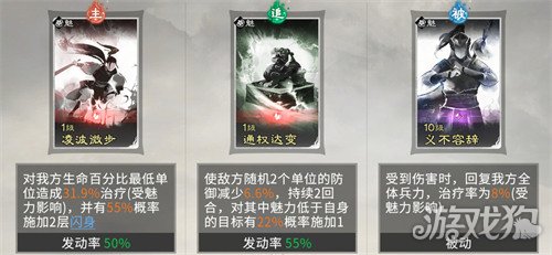 这里要注意貂蝉技能尽量选择高阶级的魅力技能,为貂蝉提供魅力属性,保证貂蝉魅力比敌方全体均高。蔡文姬可以不带追击技能,因为吕布的追击格只能给蔡文姬、貂蝉其中之一,貂蝉和蔡文姬的追击格都需要给吕布,这样会有一个英雄吃不到追击格,但是貂蝉必带3个技能增加魅力,蔡文姬可以不吃追击格不带追击技能。