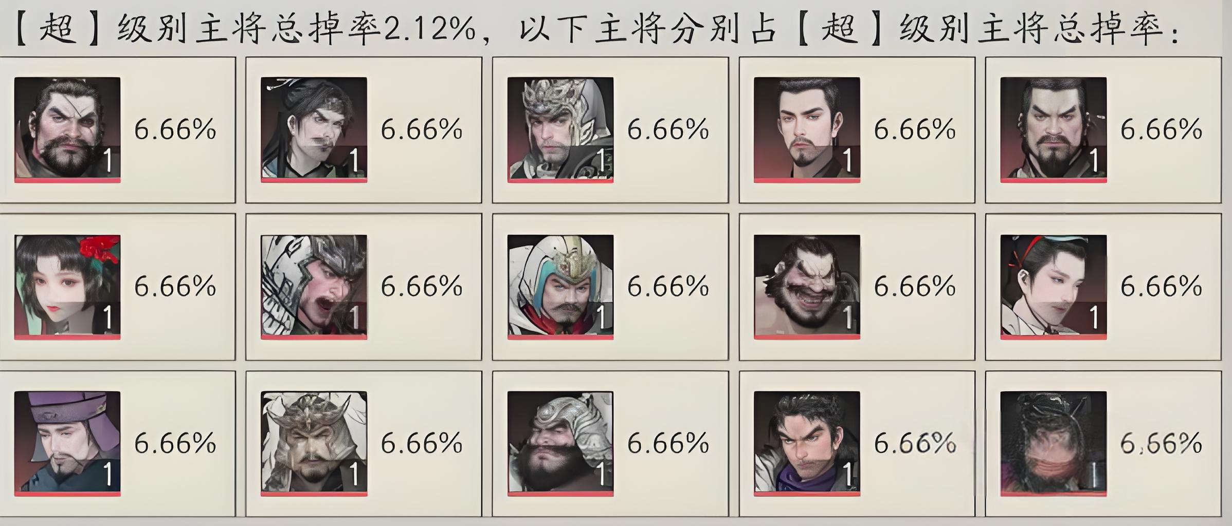 1、获取主要依赖抽卡系统,新人完成初始引导开启逐鹿中原普通卡池,用玉牌抽取高阶武将,貂蝉在超级别主将中占6点66%出率。
