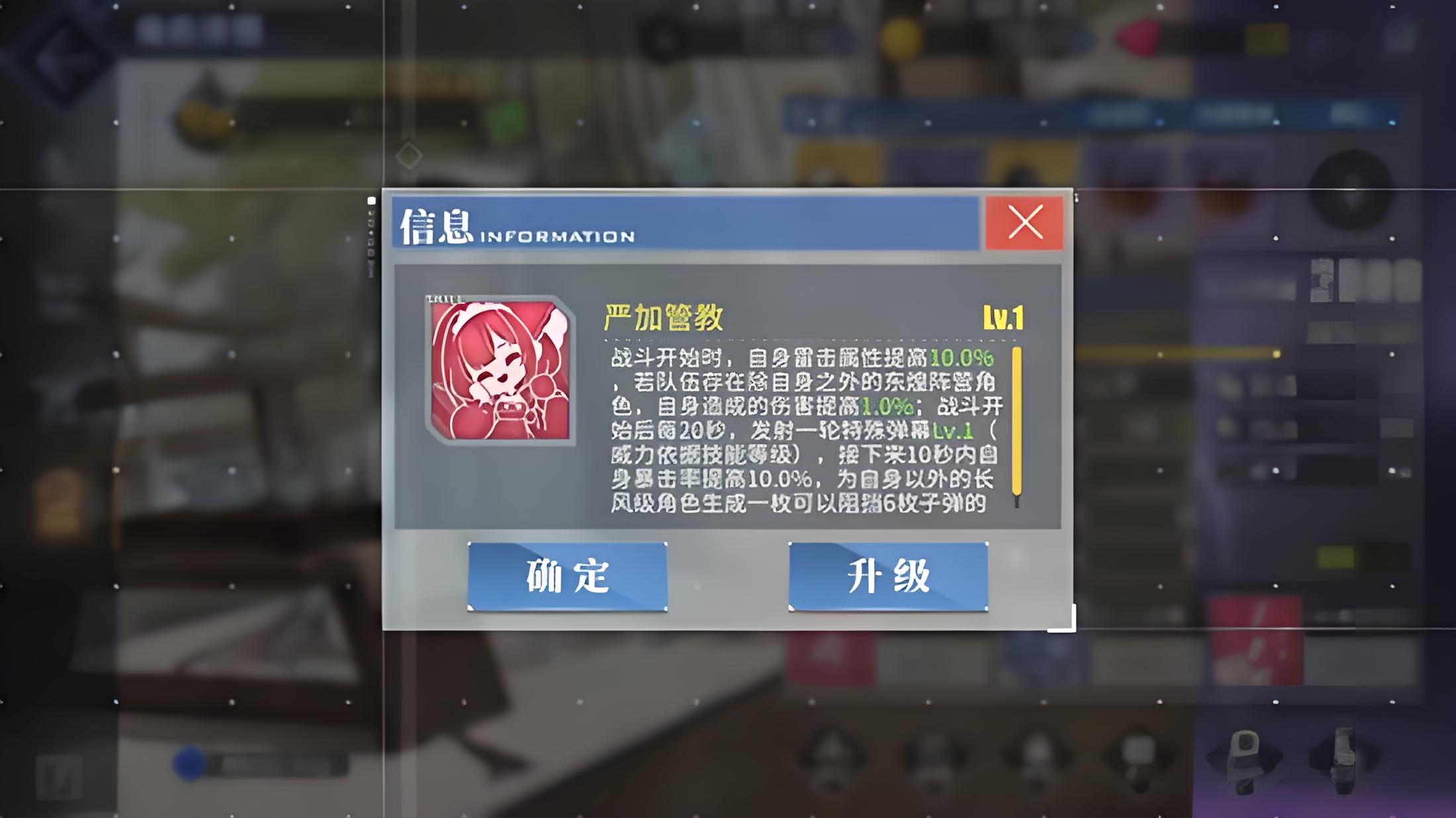 1、技能严加管教提升自身雷击,每20秒触发弹幕伤敌,队伍有其他东煌舰船时提供最高10%全队增伤。