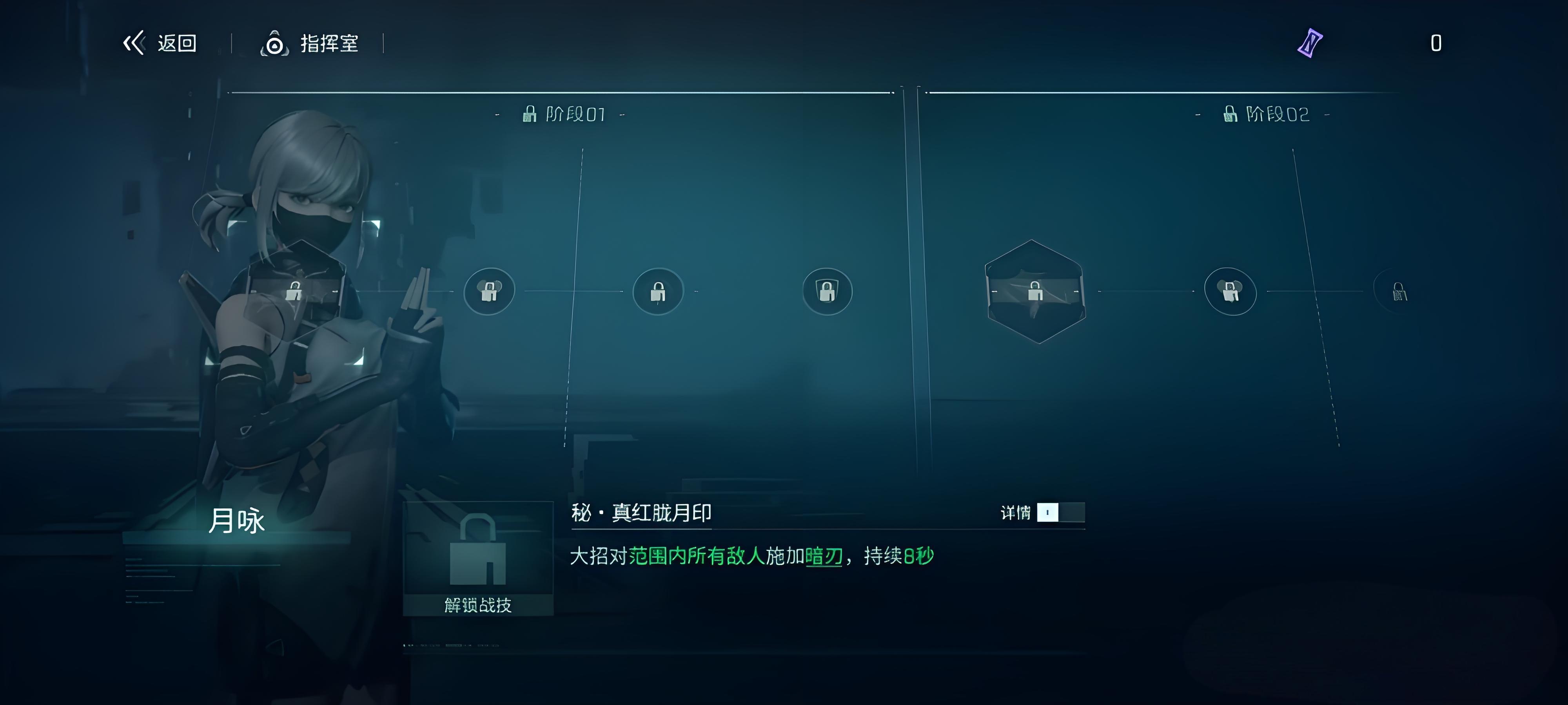 1、入场自动释放技能对射程内所有敌人造成高额实弹伤害,释放后直接离场,大招施加暗刃持续八秒钟。