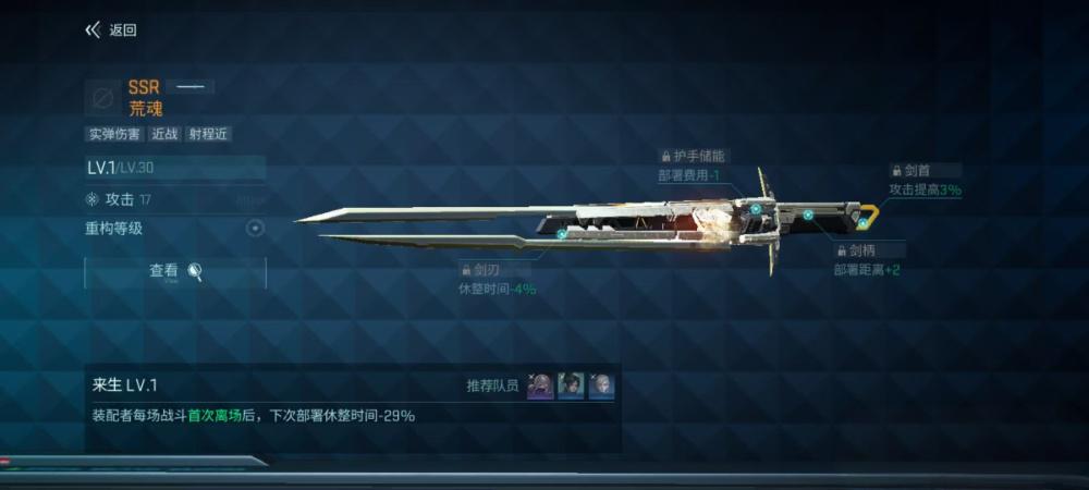 4、武器推荐SSR荒魂降低下次部署休整时间,暂未获得时可选SR境界附加首次攻击电磁伤害。