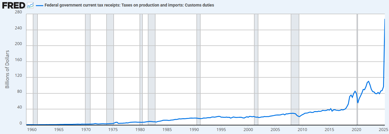 数据:FRED(圣路易斯联储经济数据)支出限制(相对于前一届政府)和关税增加的结合意味着财政部现在正在吸收流动性,而不是供应流动性。