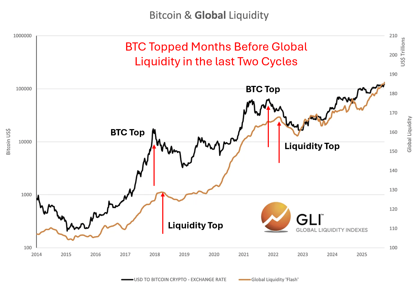 数据:Global Liquidity Index(全球流动性指数)我们不知道这是否正在当下发生。但我们确实知道,加密货币週期一直紧随流动性週期。