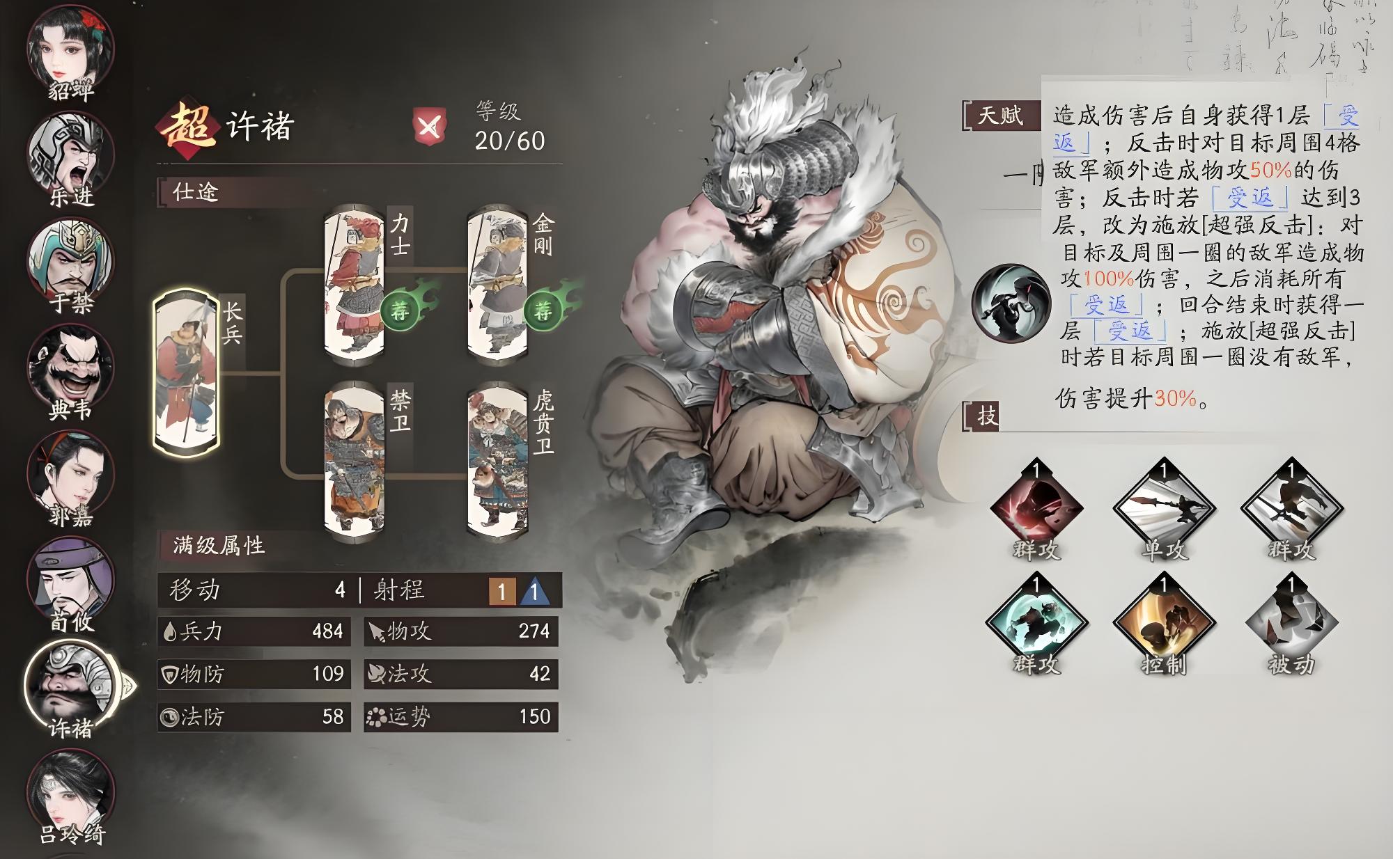 2、与许褚搭配时可放大反击输出,与曹洪组合能增强坦度,两种搭配均能提升阵容存活率与战场掌控力。