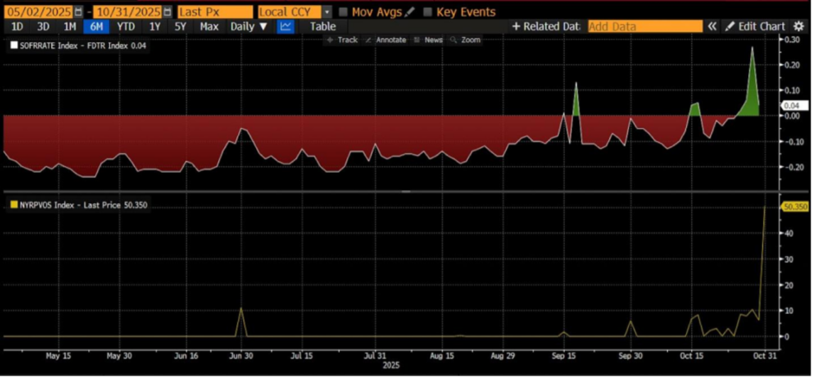 1. SOFR–FDTR 利差转正最高至 +30bp → 银行间真实资金价格高于政策利率上限,代表银行以更高成本借钱,流动性紧张;