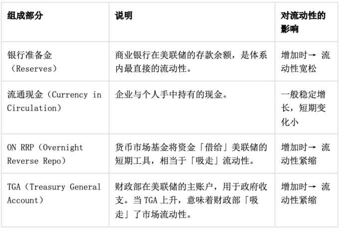 Liquidity ↑ = Fed 资产↑ + TGA↓ + RRP↓