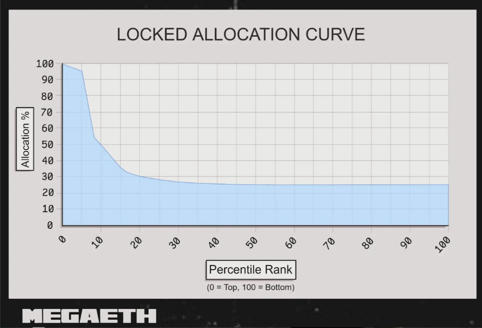 在排名的顶部,分配遵循平滑的下降斜率。排名最前的签报获得最高的分配份额,并且随着你排名的下降,这一比例逐渐降低。