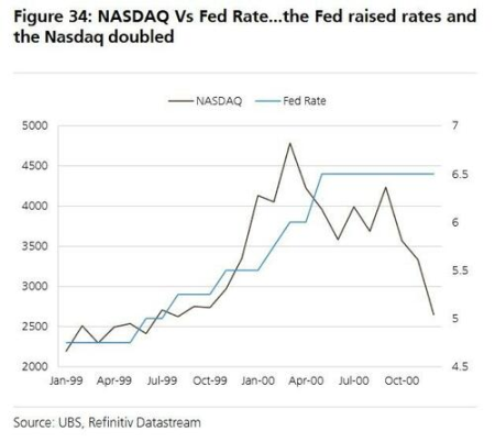 瑞银回顾了 2000 年科技、媒体和电信 (TMT) 泡沫破裂后的经验,为投资者提供了几点启示。首先,泡沫破裂后,价值可能会流向非泡沫领域,在最初的抛售中,非 TMT 股票一度上涨。其次,市场可能出现「回声效应」或双顶形态。最重要的是,「概念正确但价格错误」,微软、亚马逊和苹果等公司股价从高点暴跌 65% 至 94%,耗时 5 到 17 年才收复失地。