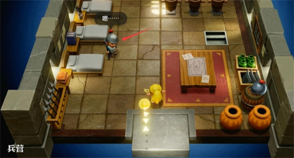 3、来到图示城墙上对话士兵得知去清点装备的数目,然后从城墙下来去兵营对话NPC选择【关于装备的数目】;
