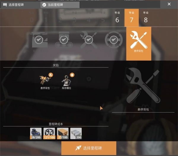 1. 悬停背包里程碑等级7解锁,玩家在枢纽终端里程碑等级7用对应的材料就可以解锁悬停背包。
