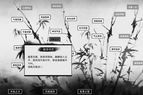 天纵之才可以装备比自身高一级的装备,踏雪鸿泥可以让角色的移动速度提升10%。