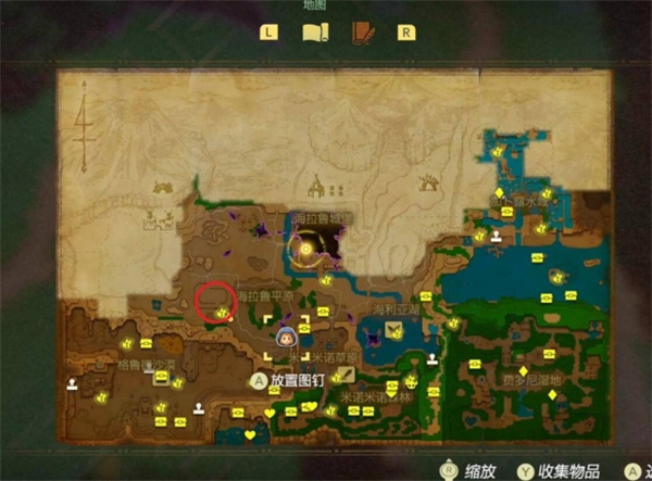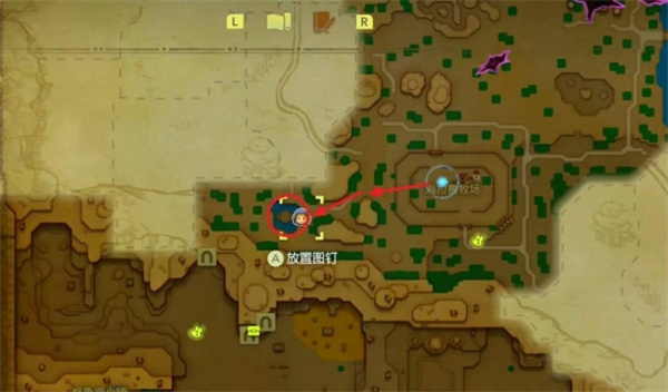 3.触发任务后,直接到海拉鲁牧场,然后往左走,需要的马就在下图圆圈位置。