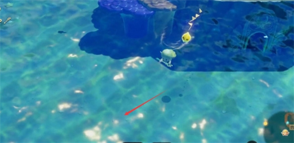 2、然后跳进水里来到宝箱的面前,先把小怪清一下;