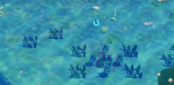 3、清完后同步宝箱,带着宝箱上岸来到NPC位置处;