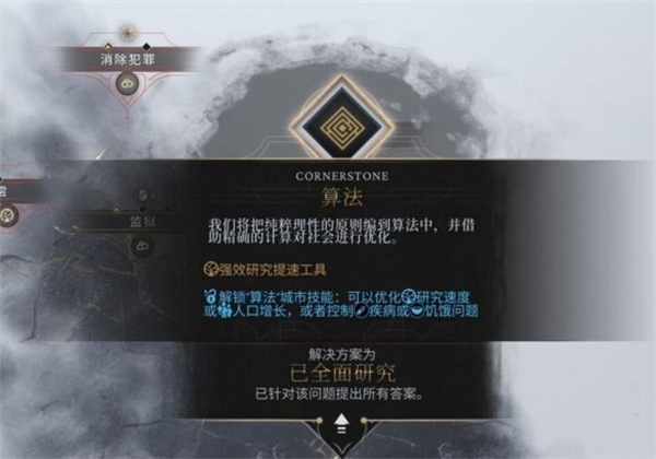 算法没有副作用,没cd随时更改,被动加快研究,效果是可以在,加减生育速度,减少疾病和减少食物消耗这几个效果里面选一个开,个人感觉最通用的一个,玩什么流派都可以点,百搭。