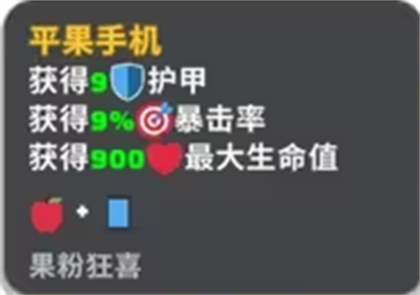 平果手机:获得9护甲,9%暴击率,900最大生命值。