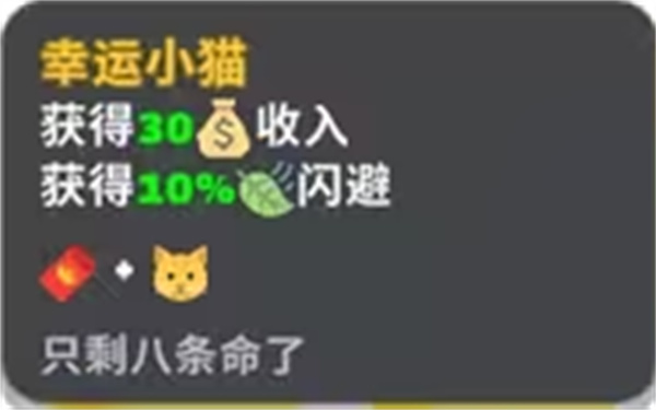幸福小猫:获得30收入,10%闪避。