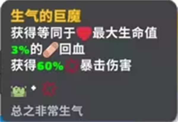 生气的巨魔:获得最大生命值3%的回血,60%暴击伤害。
