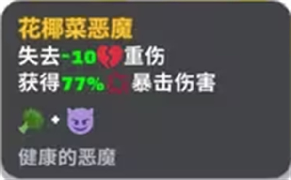 花椰菜恶魔:失去10重伤,获得77%暴击伤害。