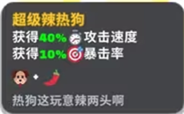 超级辣热狗:获得40%攻击速度,10%暴击率。