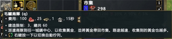 中期的贸易是希腊种族一个特色,在市集花费肉和木头生产贸易商队。选定一个自己或者队友的TC,这样他就能利用毛驴载着黄金回来。
