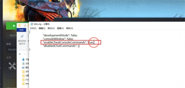 3、将下图框选一行后面的值改成“ture”,保存后启动游戏。