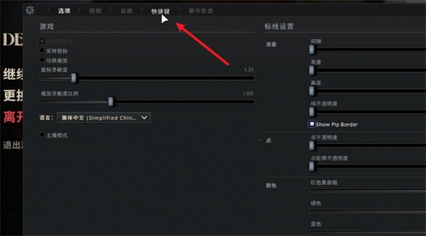 3、进入训练场,按“ESC”调出菜单界面,点击「快捷键」选项。