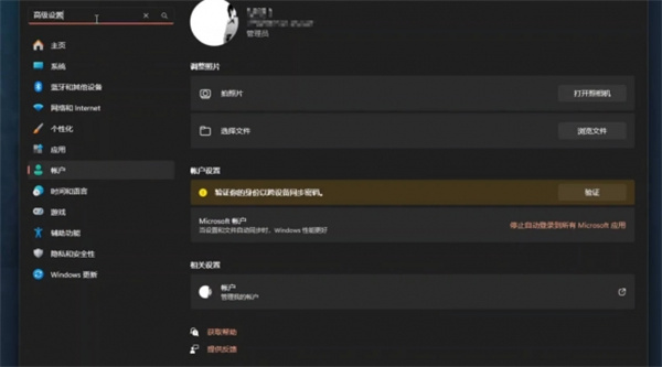 1、打开电脑设置,在搜索栏输入“高级设置”并搜索。