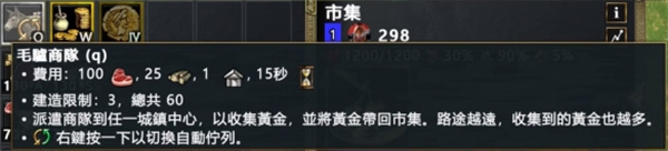 2. 另外还能通过跑贸易获得,玩家可以在英雄时代时在市集花费肉跟木头生产贸易商队,然后选定一个自己或队友的城镇中心他就能载黄金回来,跑的距离越远获得黄金也就越多。