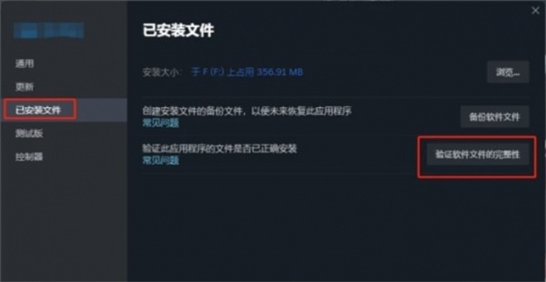 2、可以通过Steam平台来验证游戏文件的完整性,如下图所示找到已安装文件,点击验证游戏文件的完整性即可。