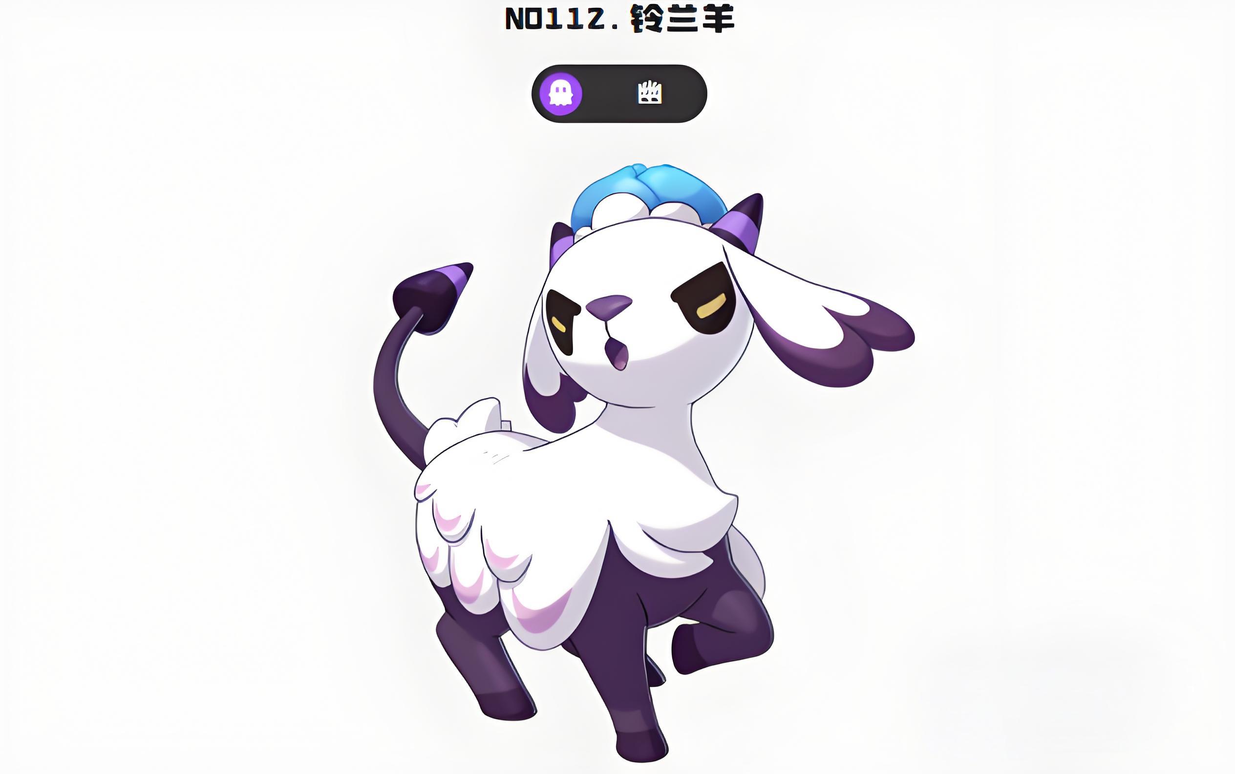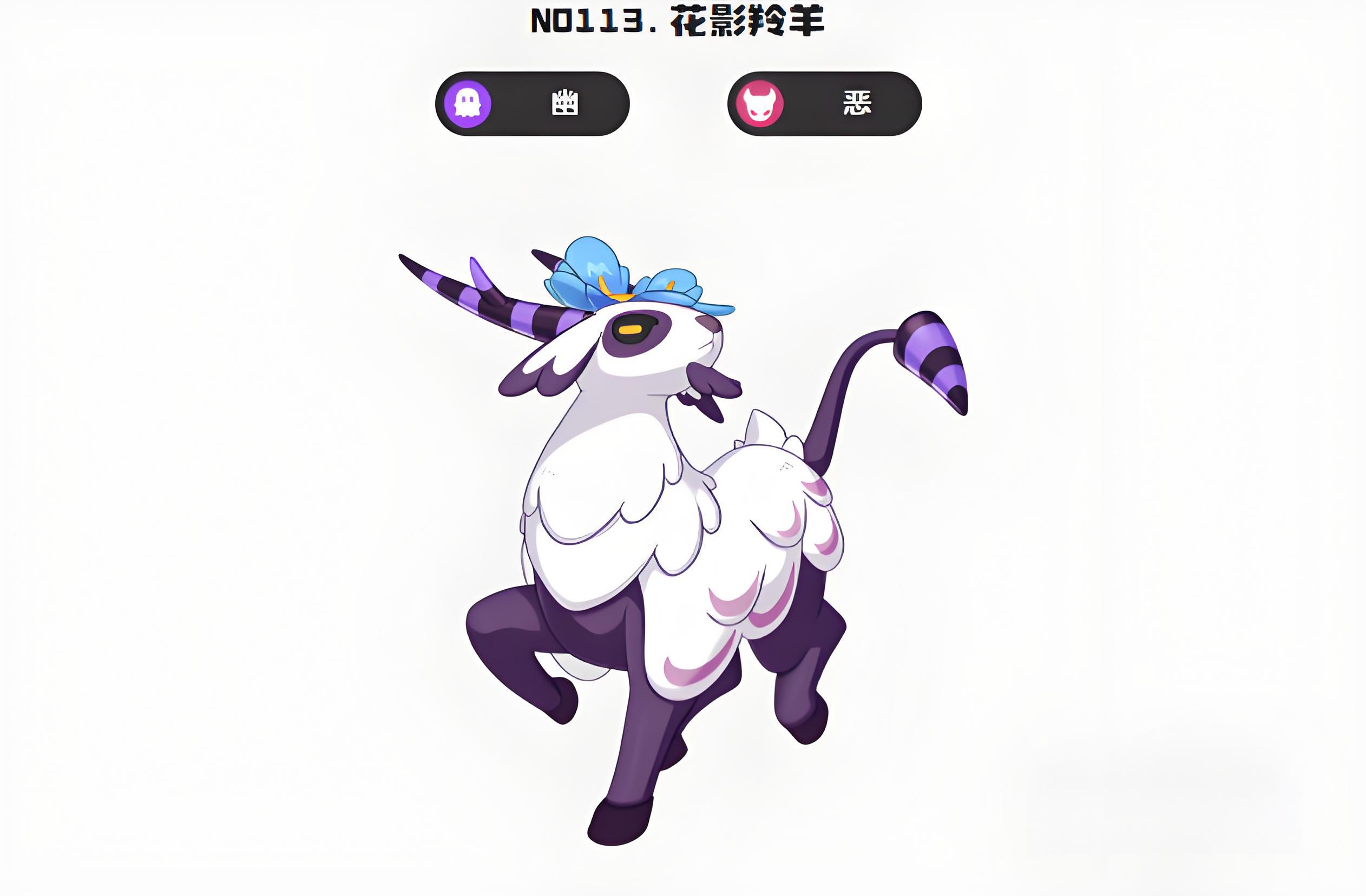1、作为幽系精灵外形是黑紫调小羊,初始属性分布均衡,20级进化为铃兰羊,32级进化为花影羚羊,体型增大仍延续黑紫配色。
