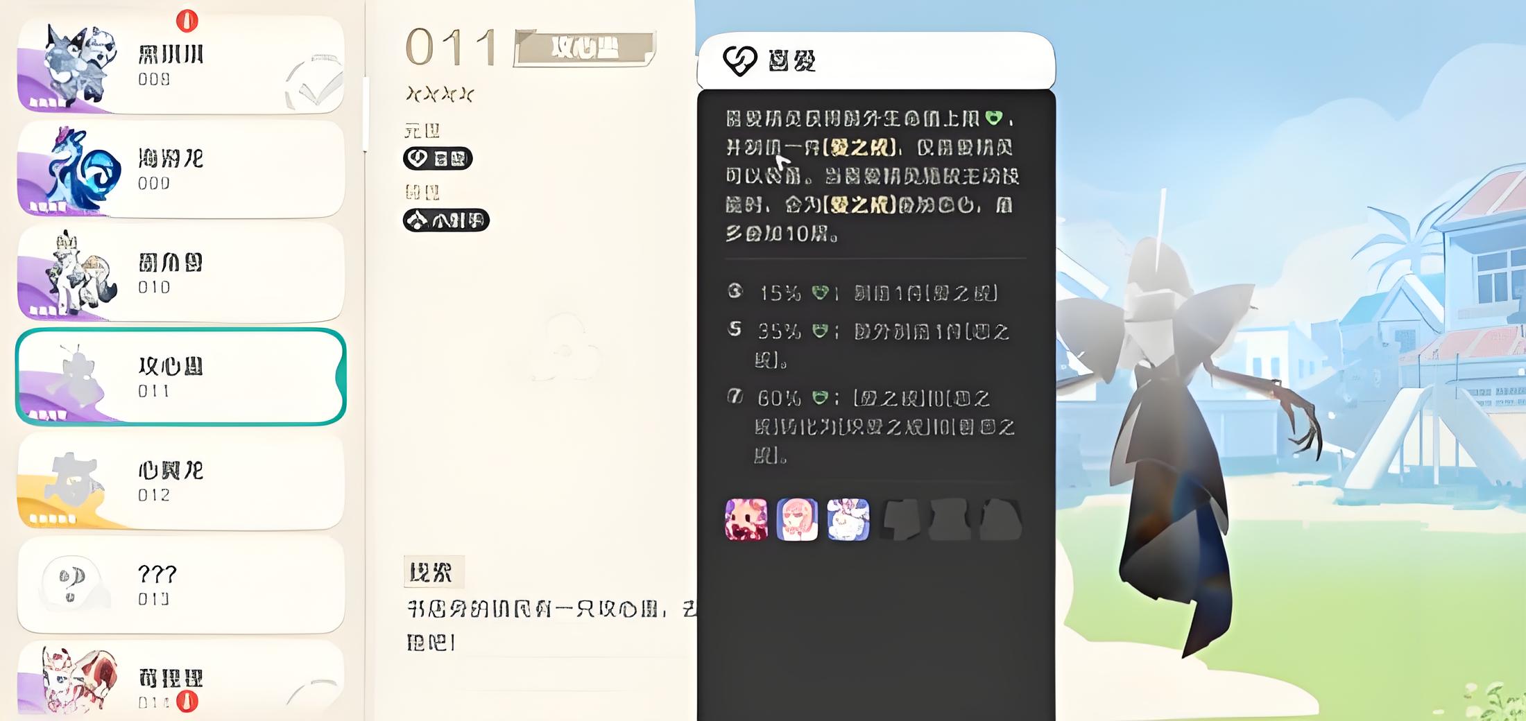 1、作为喜爱元理体系稀有精灵,具备独特成长机制,基础身高163cm能量消耗74能焦,可凭自身基础数值提升生命上限且战斗开始生成爱之戒。