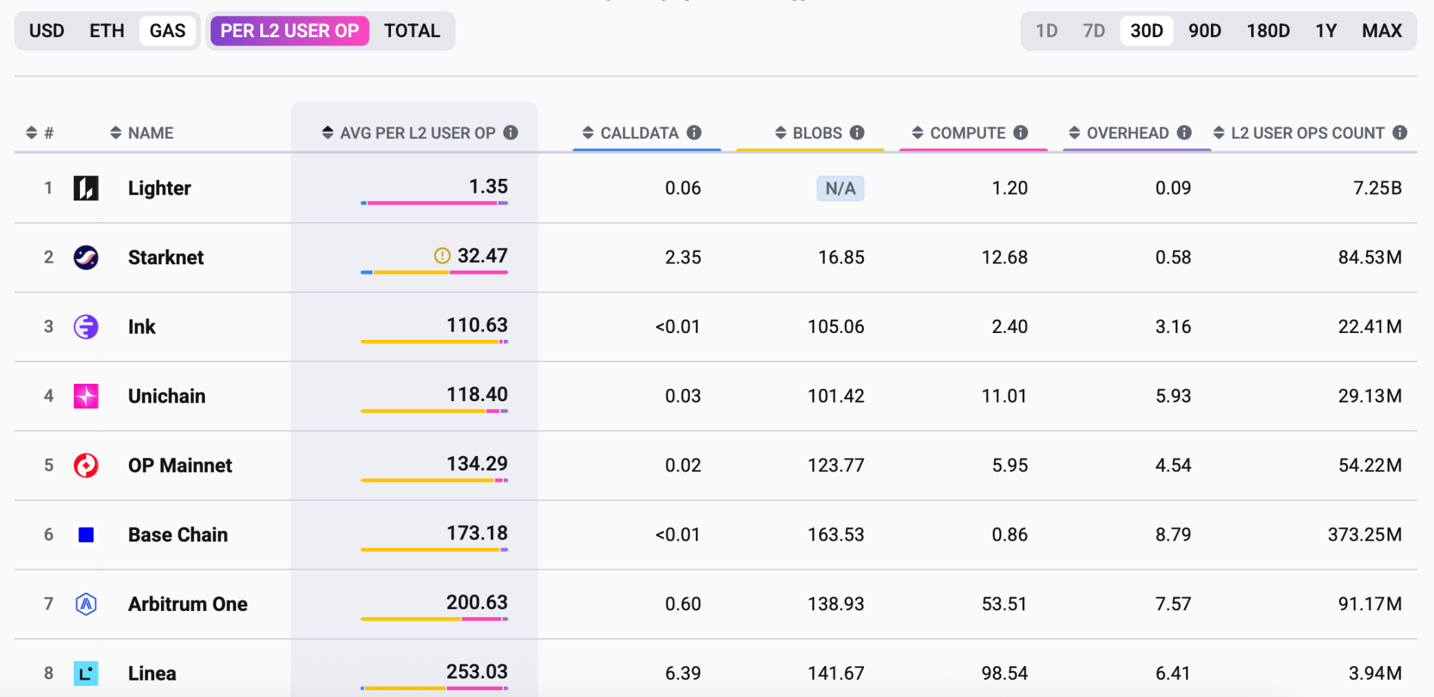 如此,散户的交易热情高,高级账户的高频交易有利可图,Lighter 只需要向高级账户收取手续费就可以既提供更好的用户体验,也可以从做市商手中收取可观的费用。这种互相成就在交易数量不断扩大的同时也大幅降低了 Gas 费用。