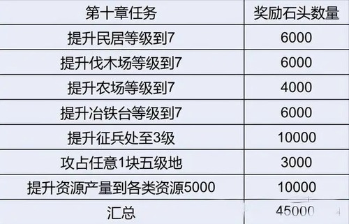 第二种情况:试炼任务有石头奖励,那么可以先领第10章的任务奖励,进入第11章后,不要领取“提升征兵处至4级”的奖励,等石头26万后再一起领取第11章奖励跟试炼任务奖励!爆仓升7本。