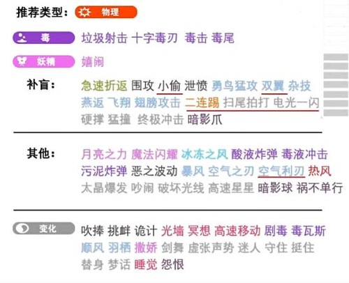 2、推荐带垃圾射击、十字毒刃、毒击、毒尾、嬉闹这几个技能,可带小偷、双翼、二连踢、扫尾拍打、电光一闪、空气利刃这些技能。