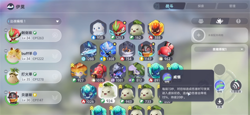 围绕这一核心,建议搭配走调草作为第二位成员。此宠物在游戏初期易于获取,且具备稳定的控制能力。其被动特性每间隔15秒可对单一目标施加一次威慑打击,使目标陷入虚弱状态,期间敌方造成的伤害降低15%,效果可持续20秒。若为稀有形态,还可进一步削弱敌人的防御与输出能力。该减伤效果适用于全体敌方单位,配合高爆发阵容时能有效延长我方生存时间,实战价值极高。