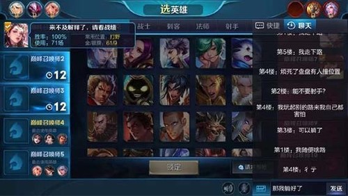 王者荣耀排位比赛中,玩家想要发送英雄战绩只需要点击选择完成后英雄头像旁的发送按钮就可以了。