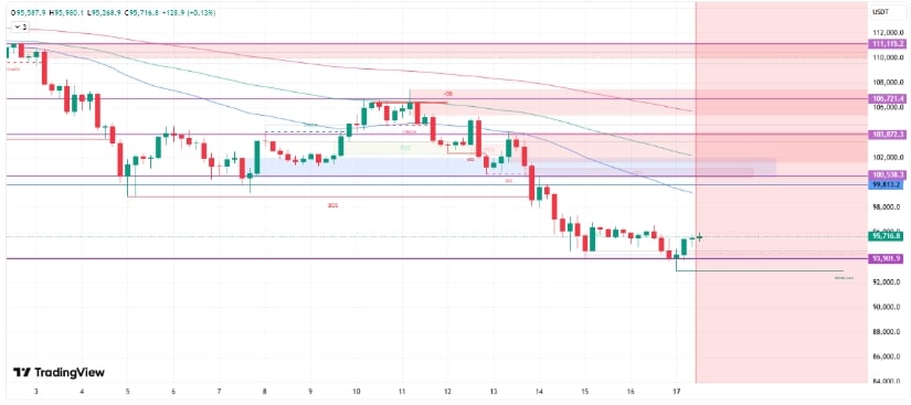 比特币价格预测:BTC价格测试低于9.4万美元流动性区域,技术指标显示可能出现反弹