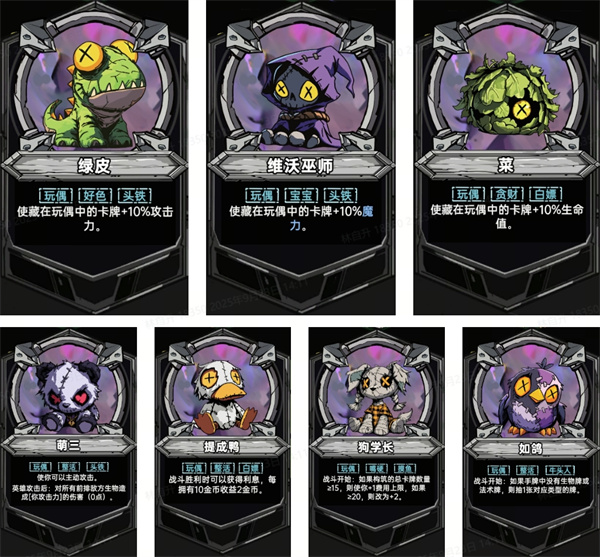 玩偶自带的属性,这是最优先考虑的点。不同的玩偶有不同的加成,这些加成可以贯穿整局游戏。