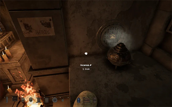 将香炉在房间内移动到各个地板通风口,与天花板通风口对齐,然后转动旋转锁箱上的滑块以打开并获得一根木桩。