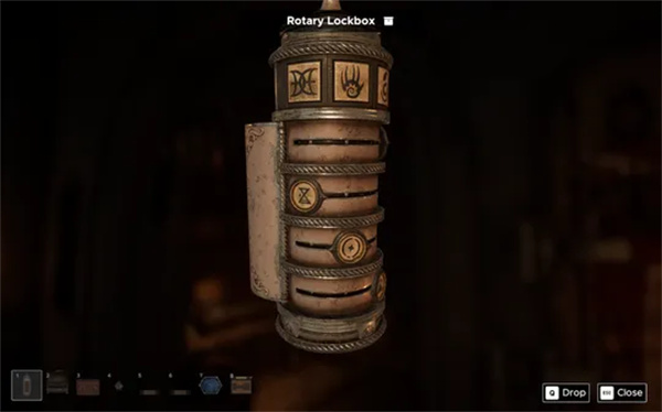 里面是一个旋转密码箱,滑块上有各种符号。