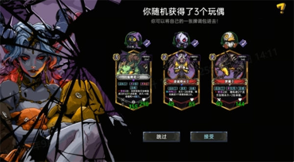 正常通关之后,获得的玩偶也是别人的玩偶,在玩偶里加入自己的卡牌就会变成自己的玩偶,就是点击右边小箭头。玩偶时间限制为48个小时。