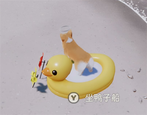 在海边完成鸭子船体验,刚到海边被男人救了之后,能看到有鸭子船,在其上方能坐上鸭子船。