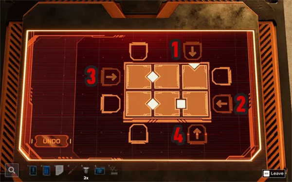 你需要重新排列方块,使四个发光的形状可见。放置箭头来将方块移动一个格子。