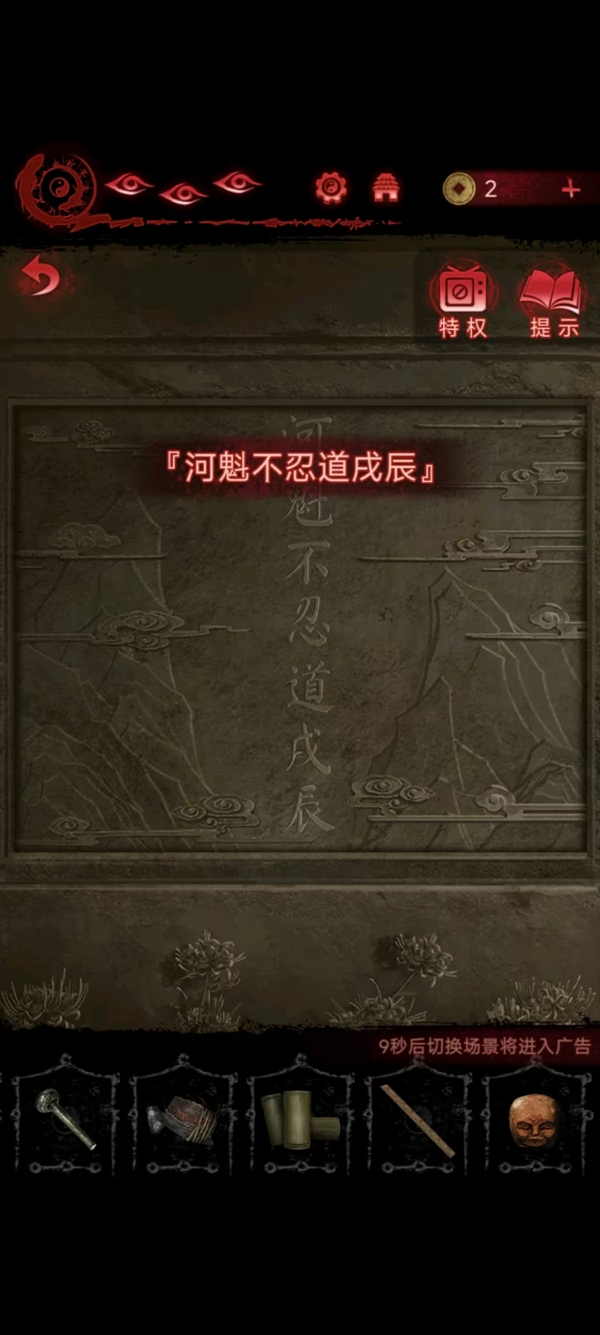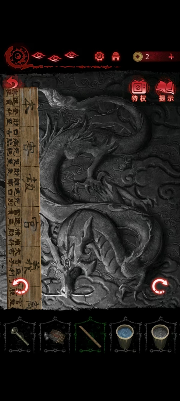 9、时光机去民国(河魁、辰、天罡),用竹罐打水后进入地下室,放上木鱼在桌上,用锤子玩敲击小游戏,获得药材,出去时光机场景的壁画用尺子量一下龙的长度,然后去葬老六场景。