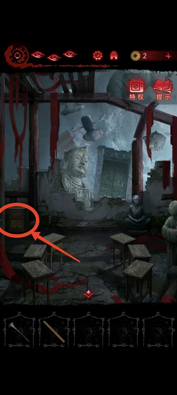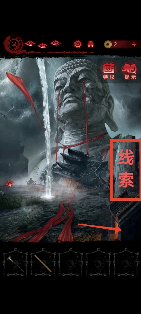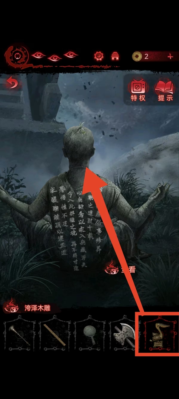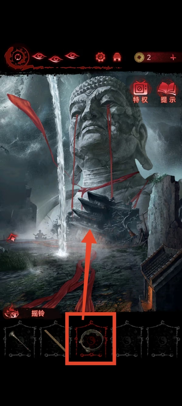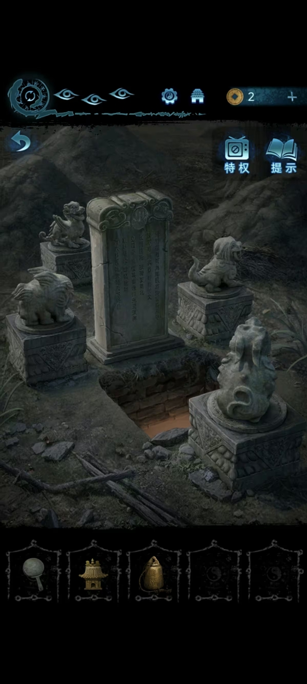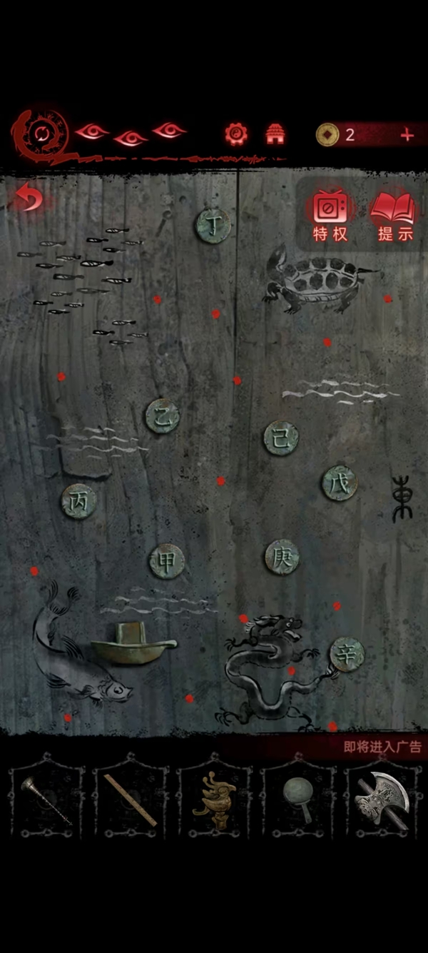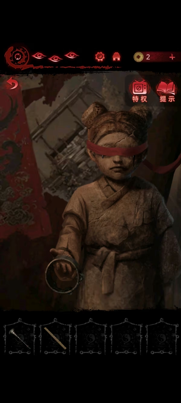 8、女主捡符,给葬老六旁边的光头贴上,获得铜船和铜球,把球扔进去地动仪,按线索解谜后解锁迷宫后面的路。