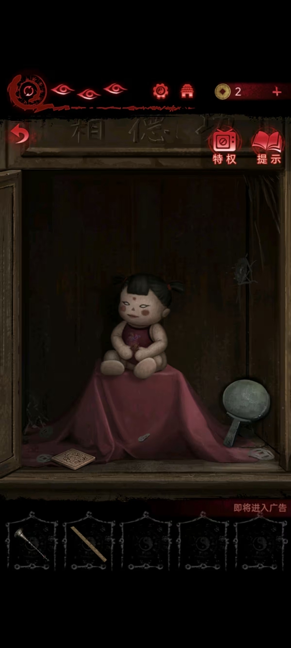 2、女主把玩具给小孩,开门后玩左边的小游戏(没啥难度不解释怎么玩)获得铜镜、布娃娃、木块。铜镜给男主。
