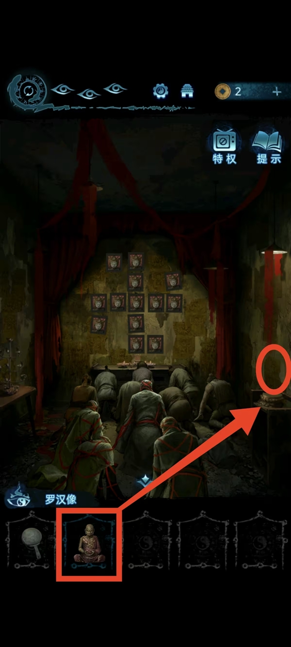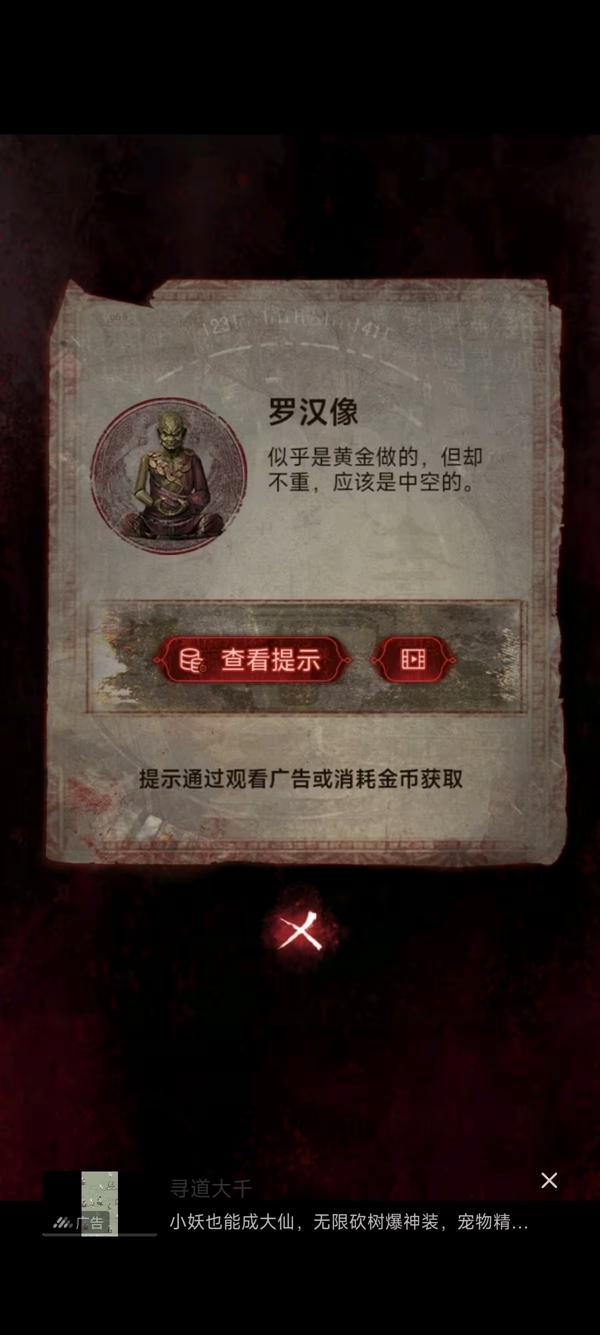 5、右下角拼图获得木雕和古币,左上角获得罗汉像,解锁右上角的铜鼎(线索)和中间地震仪(线索用的地方),回入口把罗汉像给男主,男主把罗汉像放入妙妙屋右边的底座上,获得金秤砣和金屋,走之前看旁边的线索。